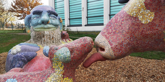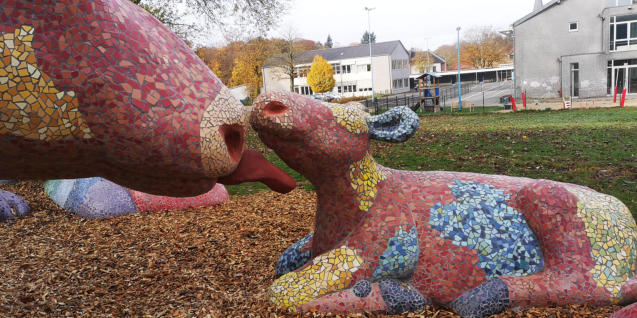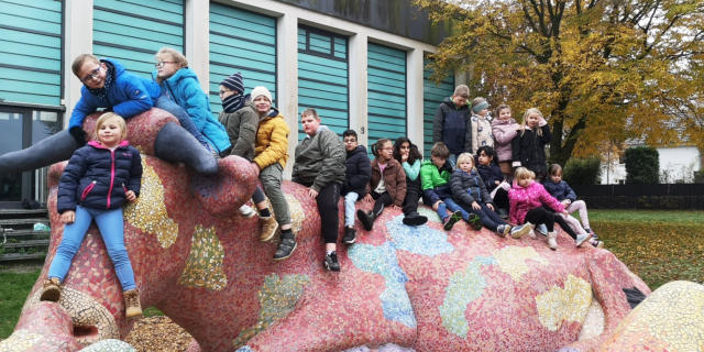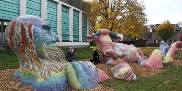 Die vierteilige bespielbare Skulptur „Kuh-Kalb-Maus“ wird feierlich enthüllt und