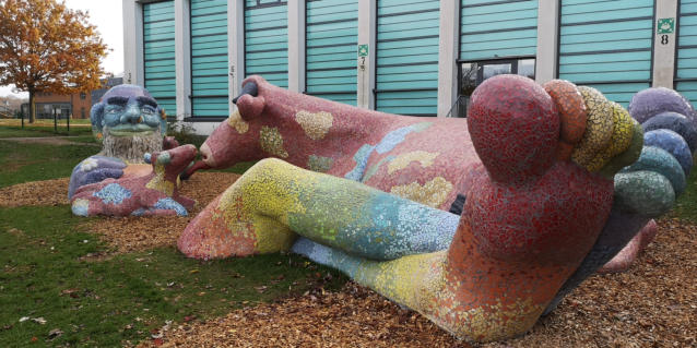 Die vierteilige bespielbare Skulptur „Kuh-Kalb-Maus“ wird feierlich enthüllt und