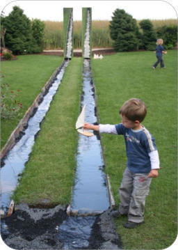 Wasserrinnen, in denen kleine Holzboote fahren können.